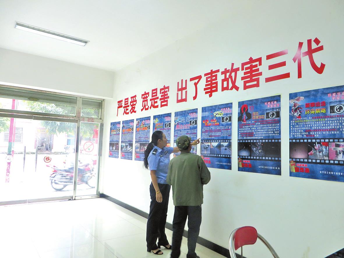 依托“小窗口”,增强文明守法“大意识”。大队充分依托车管业务大厅、违法处理室等宣传阵地,采取“谁办理谁普法”的模式,主动把民警、辅警转变为交通法律法规宣传员,在群众办理交通违法处罚时,借助辖区典型交通事故案例,面对面进行宣传教育。同时,要求办理交通违法业务的群众必须到警示教育中心观看《驾驶人满分和审验教育系列警示片》《车祸猛如虎》等宣传片。在摩托车驾驶员考取驾驶证时,主动向驾驶员普及摩托车需佩戴安全头盔、考取机动车驾驶证方能驾驶、无牌车辆不允许上路、严禁违法载人等交通法规,促使广大交通参与者牢固树立安全意识和守法意识。
