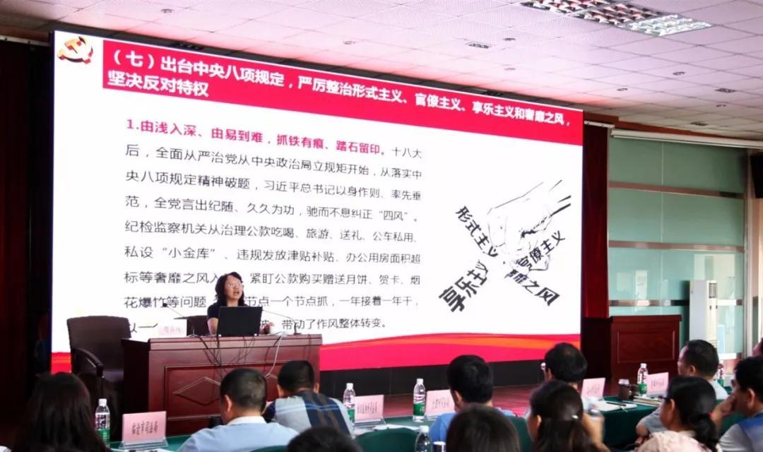 培训期间,省司法厅党委委员、省纪委驻省司法厅纪检组组长杨琼瑛为全体学员作了《以习近平新时代中国特色社会主义思想为指导,推动全省司法行政系统全面从严治党向纵深发展》的讲座,从十八大以来全面从严治党取得的新成效、清醒认识全面从严治党面临的新形势新问题、认真落实全面从严治党新要求新任务三方面,给参培人员上了一堂深刻的廉政党课。
