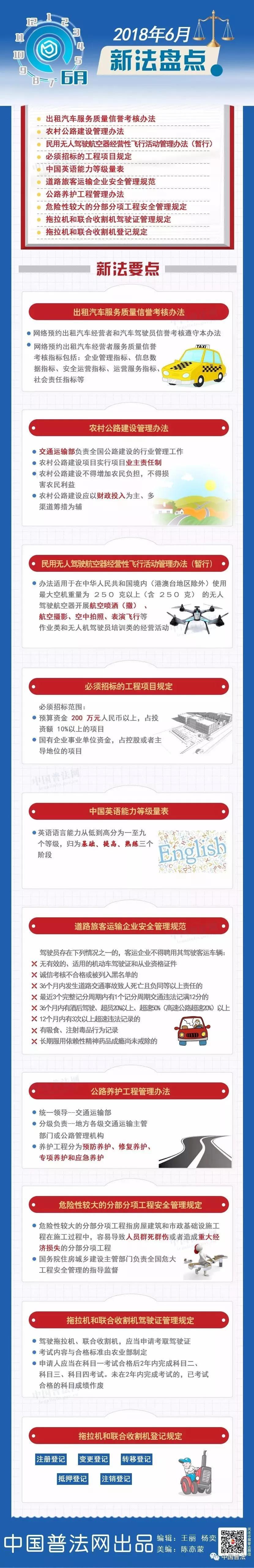 网约车将纳入出租汽车服务考核体系、无人驾驶航空器经营性飞行活动将有章可依、保险公司关联交易监管进一步加强……6月起,一批新的法律法规将影响我们的生活。