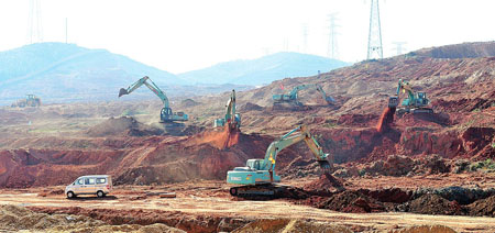 连日来,易门县陶瓷特色工业园区麦子田片区到处是热火朝天的施工场景,十多台大型机械正在平整土地。该片区规划面积为7.51平方公里,于2013年底开始启动建设,重点发展新材料新能源、装备制造、电子电器和金属制品的生产加工。去年上半年引进项目8个,总投资68.5亿元;在谈项目5个,拟投资5.9亿元。(记者 曾永洪 摄)