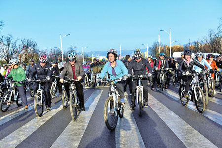 昨日,“七彩云南全民健身运动会”2015新春环东近面山自行车赛在玉溪出水口公园举行,来自全国各地及美国的1262名自行车运动爱好者参赛。上午8点52分,200余名竞技组选手率先出发。随后,市领导饶南湖、夏立洪、杨兴荣、杨洋同乐骑组选手一起踏上了征程。