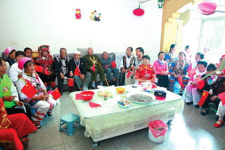 9月3日上午,在红塔区大营街街道赤马社区五组,95岁高龄的抗战老兵苏长禄与家人一起观看纪念抗战胜利70周年阅兵式直播。苏长禄毕业于黄埔军校五分校,后加入新三军183师548团,曾参加过第一次长沙会战,并亲历日本投降。当看到抗战老兵方队亮相天安门广场时,老人的脸上露出了欣慰的笑容:“国家没有遗忘我们,组织抗战老兵方队,这是国家给予我们老兵最大的荣誉,我深感欣慰。记者 刘黎 摄