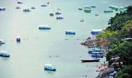 近日,许多游客在澄江县抚仙湖禄充风景区游玩。近年来,澄江县依托抚仙湖、帽天山等旅游资源和良好的生态环境,坚定不移地实施“旅游兴县”发展战略。“十二五”期间,全县共接待游客2405万人,实现旅游总收入114.4亿元。旅游产业已逐渐成为该县发展较快的新兴产业和新的经济增长点。(记者 曾永洪 摄)