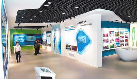 近日,占地面积约750平方米、投资约920万元的抚仙湖生态展示中心已进入试运行阶段。该展示中心分为抚仙湖的现状及困难、生态保护治理措施及“十三五”规划、产业发展战略与创新模式、展望未来图景四个展厅,应用了数字多媒体、互动体验等技术突出生态环保概念,营造亲切友好的展示氛围。(记者 曾永洪 摄)