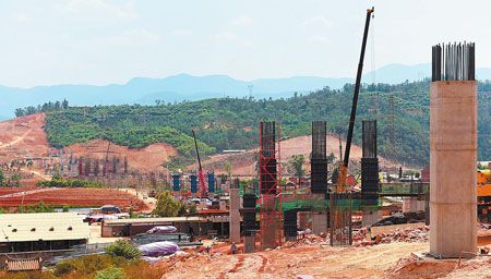 5月12日,武定至易门高速公路易门段全长1840米的易门互通立交正在抓紧建设中。该高速公路是滇中城市经济圈高速公路网络的重要路段,路线全长104.34公里,概算投资156.06亿元,按路基宽33.5米双向6车道设计,设计速度100千米/小时。其中,我市境内段长34.4公里,估算投资35亿元,目前已累计完成投资10.7亿元,占估算总投资的30.6%。(记者 曾永洪 摄)