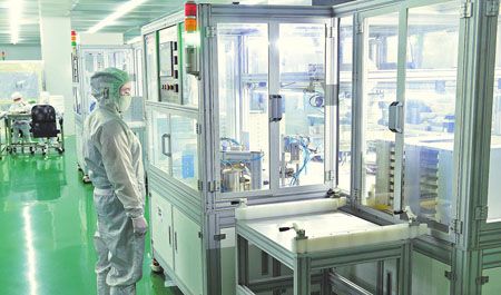 10月28日,位于红塔区北城工业区的蓝晶科技股份有限公司生产车间里,技术工人正在生产线上忙碌。该公司是专门从事LED上游产品生产、加工、销售的现代化高新技术企业,现已建成年产1300万片的产能规模。近年来,公司建立了完善的市场营销网络,销量呈现持续增长,市场前景广阔。今年1至9月,完成销量837万片,实现营业收入1.87亿元、利润5256.7万元,缴纳税金1619万元,同比销量增加98万片、增长13.3%。(记者 曾永洪 摄)