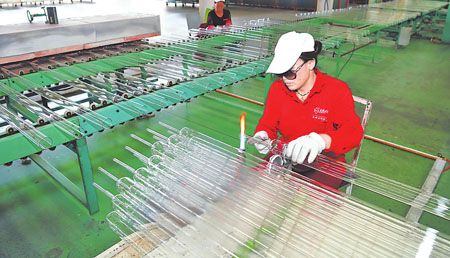 10月28日,太标集团技术工人正在年产100万套太阳能热水器生产线上忙碌着。近年来,该集团通过转型升级、产业链延伸、资源整合、重大项目实施和技术创新等有力措施,确保了集团各项产业的稳步推进。截至今年9月底,集团实现销售收入3.91亿元。其中太阳能公司销售额1.52亿元,销售太阳能102350套。 (记者 曾永洪 摄)