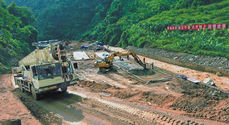 近日,位于国道213线元江境内290道班段清水河边空地处,中铁五局玉磨铁路项目部的施工人员正在进行员工房和混凝土拌合站基础工程建设。当天,记者从元江县城沿213国道至因远镇北泽村看到,玉磨铁路中标方的中铁五局、中铁十九局施工队伍,已在这段近40公里长的清水河谷里安营扎寨,摆开战场,而由云南宝力恒建设工程有限公司承建的国道213线元江境内改扩建工程,也在这里如火如荼地进行中。铁路、公路两支队伍汇聚于此,打响了“大通道”建设攻坚战。(记者 潘泉 摄)