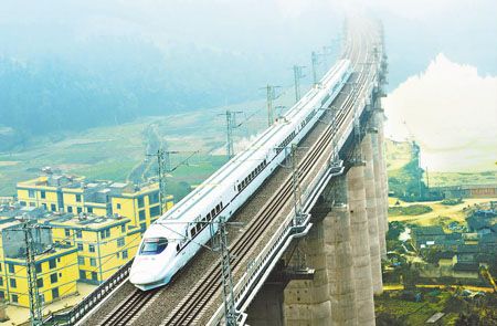 12月8日9时05分,一列白色 “和谐号”检测动车组从位于红塔区刺桐关的观音寺二号隧洞呼啸而出,沿着攒坝塘铁路桥向着玉溪站飞驰而去。9时40分,该趟动车又行经此桥返回昆明新南站。据了解,连日来每天都有数列检测动车组多趟次飞驰在新昆玉铁路线上,以设计速度对全线各系统设备进行综合测试。 记者 潘泉 摄
