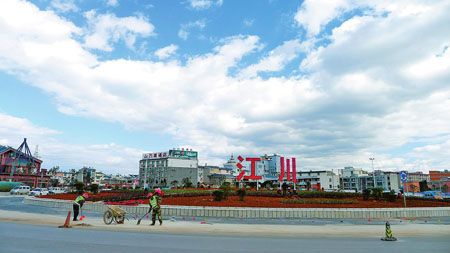 12月20日,在位于江川区范围内玉江大道源头五岔路口的环岛(江川大转盘)处,施工人员正在对江川大转盘进行绿化栽种、障碍清除、路面冲洗。据悉,江川大转盘升级改造工程自10月施工以来,工作人员加班加点,抢抓时间进度,确保开渔节前竣工投用,目前已改造完毕。改造后的环岛,直径为70米、高度0.5米,实现了“降低高度、缩小半径”的目的,将使过往车辆通行更加顺畅。(记者 宋礼春 摄)