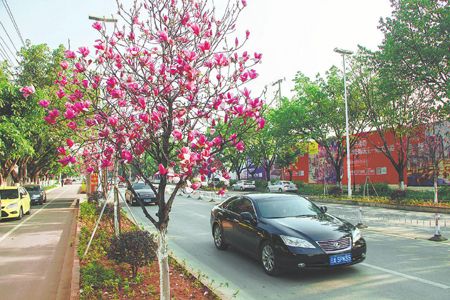 立春过后,玉溪中心城区玉兴路段两侧的玉兰花竞相开放,粉色、紫色的花朵挂满枝头,与周边成荫的绿树交相辉映,为城市增添了一道亮丽的风景线。