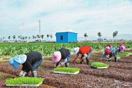 一年之计在于春。初春的早晨,在杞麓湖南岸的通海县秀山街道大树社区蔬菜试验示范基地,村民们正在抢抓时令移栽芹菜苗。“这几天的芹菜每公斤能卖0.7元左右,亩产在6至7吨,一亩芹菜能卖4000多元。我们盼望着这一茬收获的时候价格会上涨。”村民王正红说。