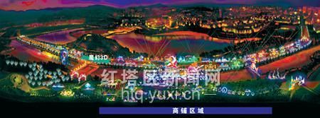 在“碧玉流光·梦幻仙境映玉河”板块,设计者以玉河为重点进行梦幻仙境打造,是本届灯会的一大亮点。该板块在展现玉溪发展的同时,彻底打破人们“灯展观花灯”的传统观念,设计者根据玉河现有的地形及特色,应用高科技的LED点灯源、线灯源、网灯源相互穿插,勾勒出更加色彩斑斓、栩栩如生的景观造型,打造出令人耳目一新的视听感官效果。同时,在玉河上打造水上灯组,让市民和游客在水面上感受碧玉流光、月影灯映的梦幻世界,进一步形成完整的赏灯体系。