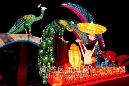 1月22日晚上8点,2017中国玉溪“哇家灯会”首次亮灯测试工作启动。在灯会现场,孔雀天穹、幸福摩天轮等大型灯组华灯闪烁、流光溢彩,呈现出一派梦幻的光影景象。