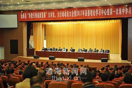 3月15日下午,我县举行“科教引领创新发展”大讨论、大行动动员大会暨2017年县委理论学习中心组第一次集中学习,对深入开展“科教引领创新发展”大讨论、大行动进行安排部署。县委书记卢维江强调:全县上下要牢固树立创新发展理念,深入实施创新驱动战略,为推动通海跨越发展、率先全面建成小康社会提供强大动力。
