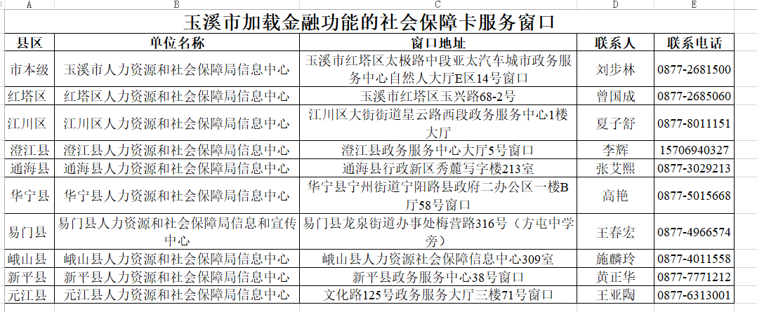 22、玉溪市金融社保卡有哪些合作银行?服务电话有哪些?