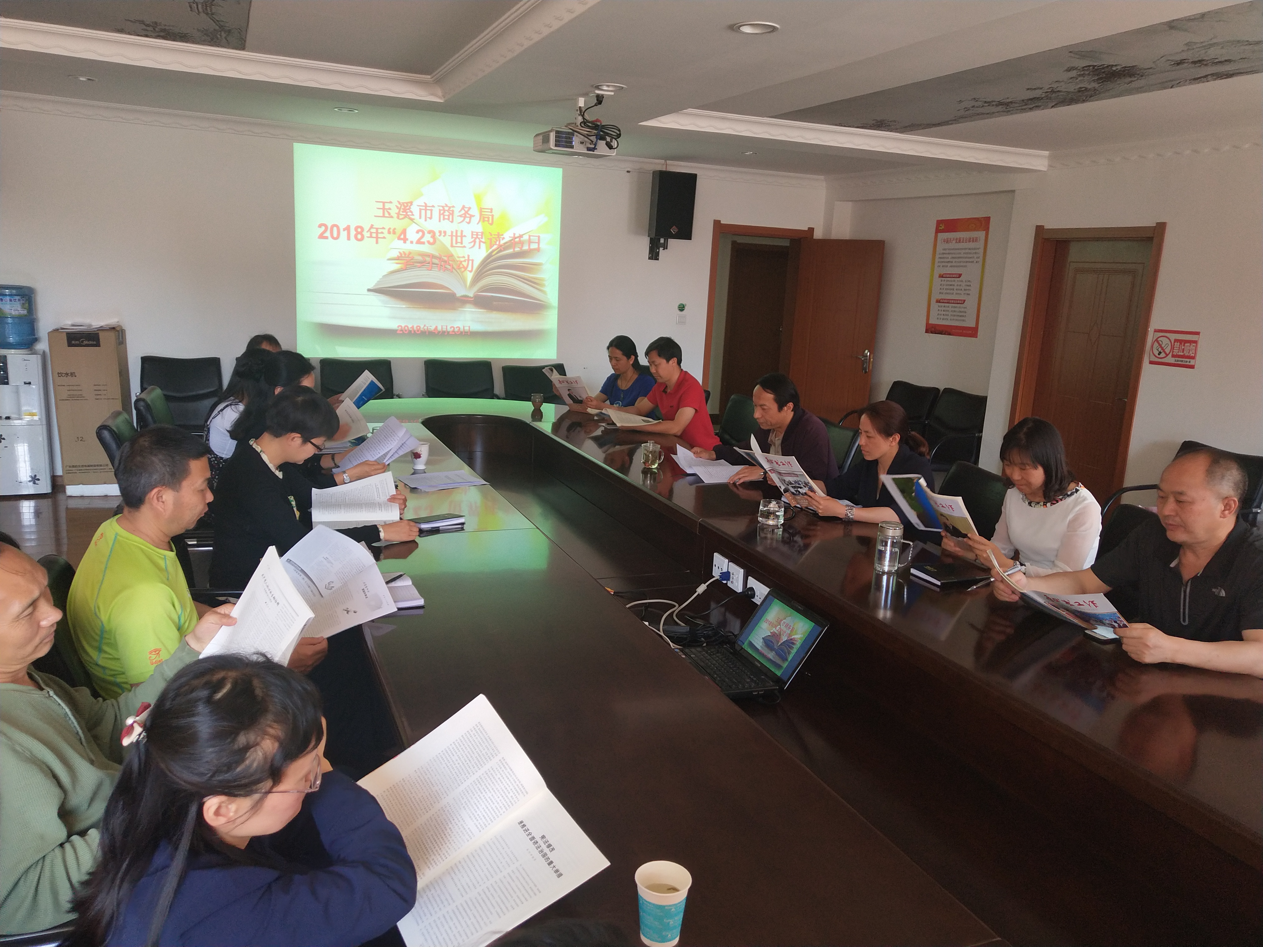 为积极推进学习型机关建设,进一步树立广大干部职工的读书学习意识,养成良好的阅读习惯。2018年4月23日下午,玉溪市商务局组织全体干部职工认真开展2018年“4.23”世界读书日学习活动。