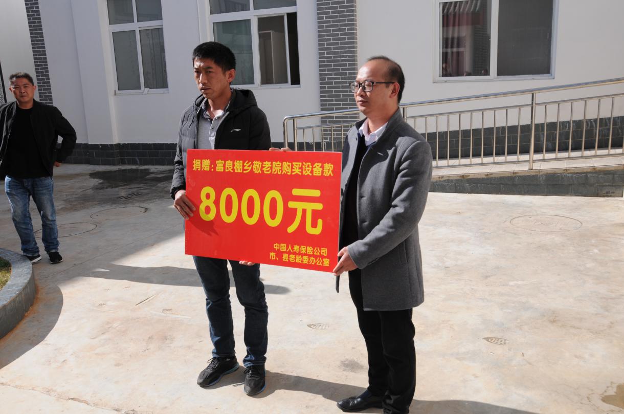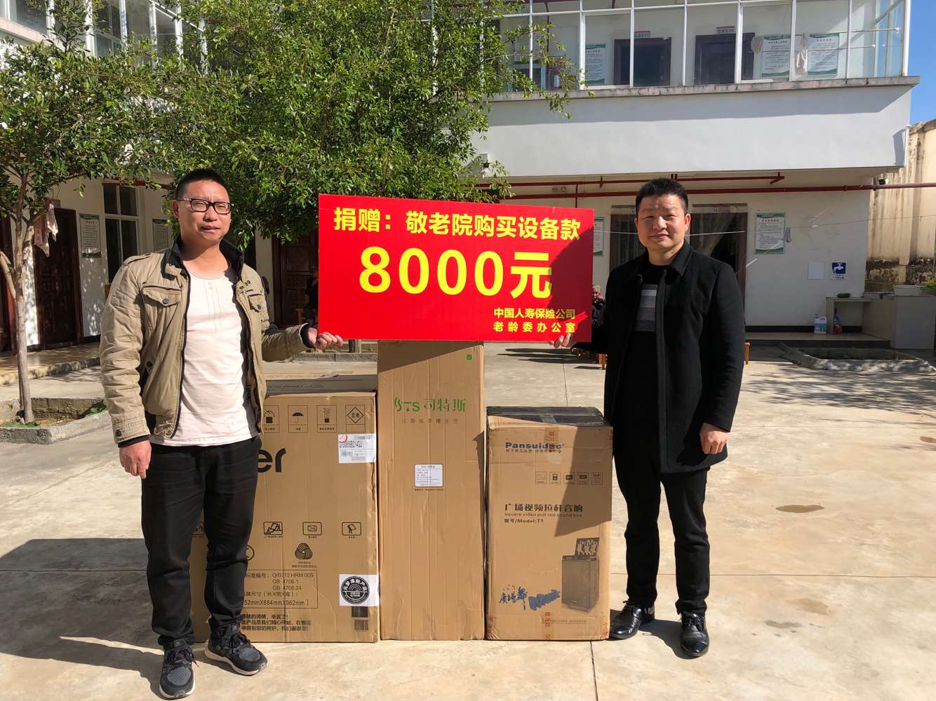 此次捐赠款项,由中国人寿保险股份有限公司玉溪分公司、玉溪市老龄办和玉溪市慈善总会共同发起,共计捐款72000元,专项用于玉溪市两区七县九个农村敬老院的基础设施建设或购买必要的设施设备,每个敬老院捐赠8000元,为改善敬老院条件、提高服务水平奉献爱心。