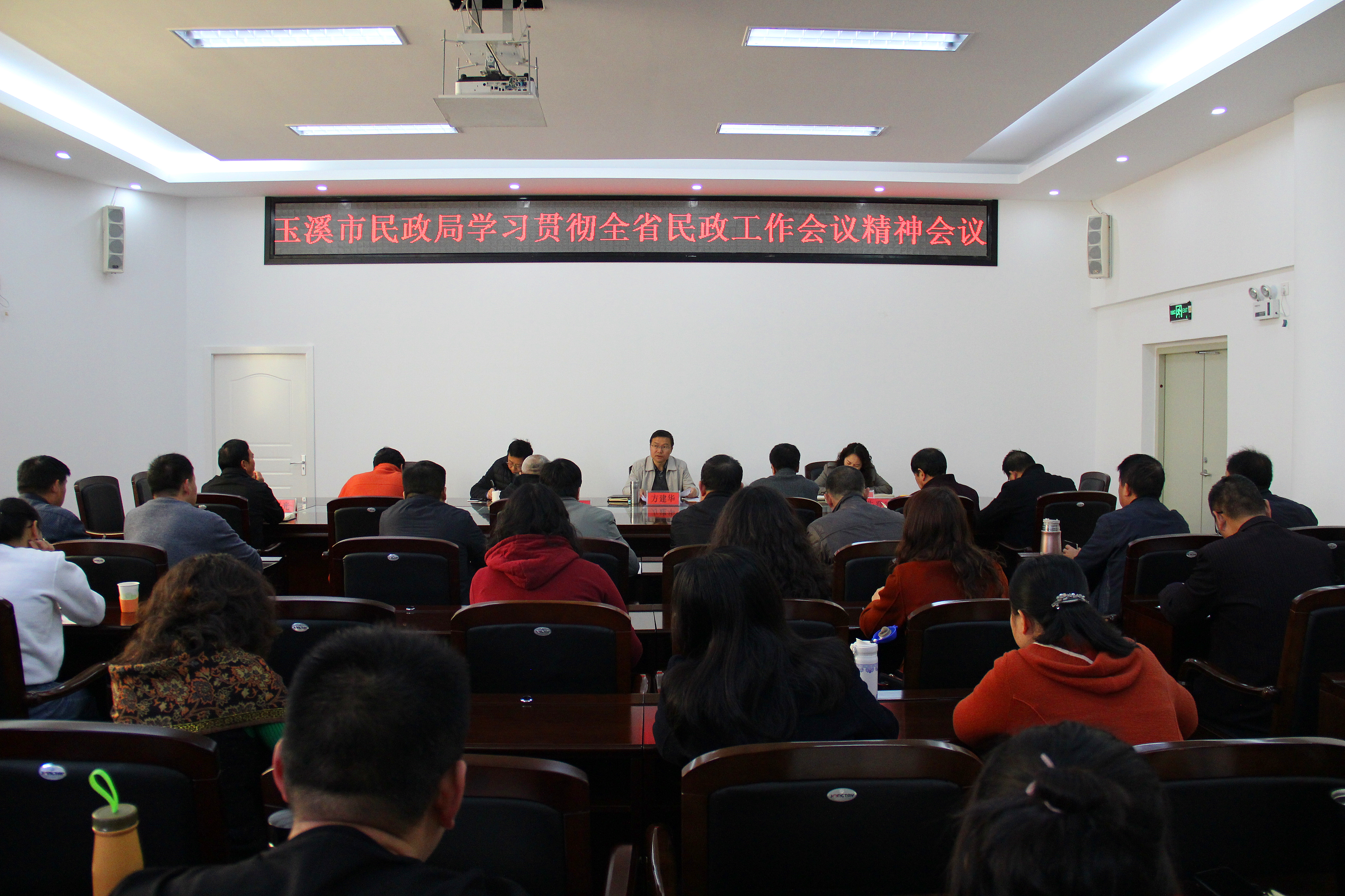 3月4日,玉溪市民政局召开全局干部职工会议,学习贯彻全省民政工作会议精神,局党组书记、局长方建华主持会议并就贯彻落实会议精神提出要求。