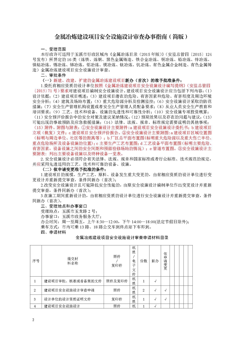 金属冶炼建设项目安全设施设计审查办事指南(简版)