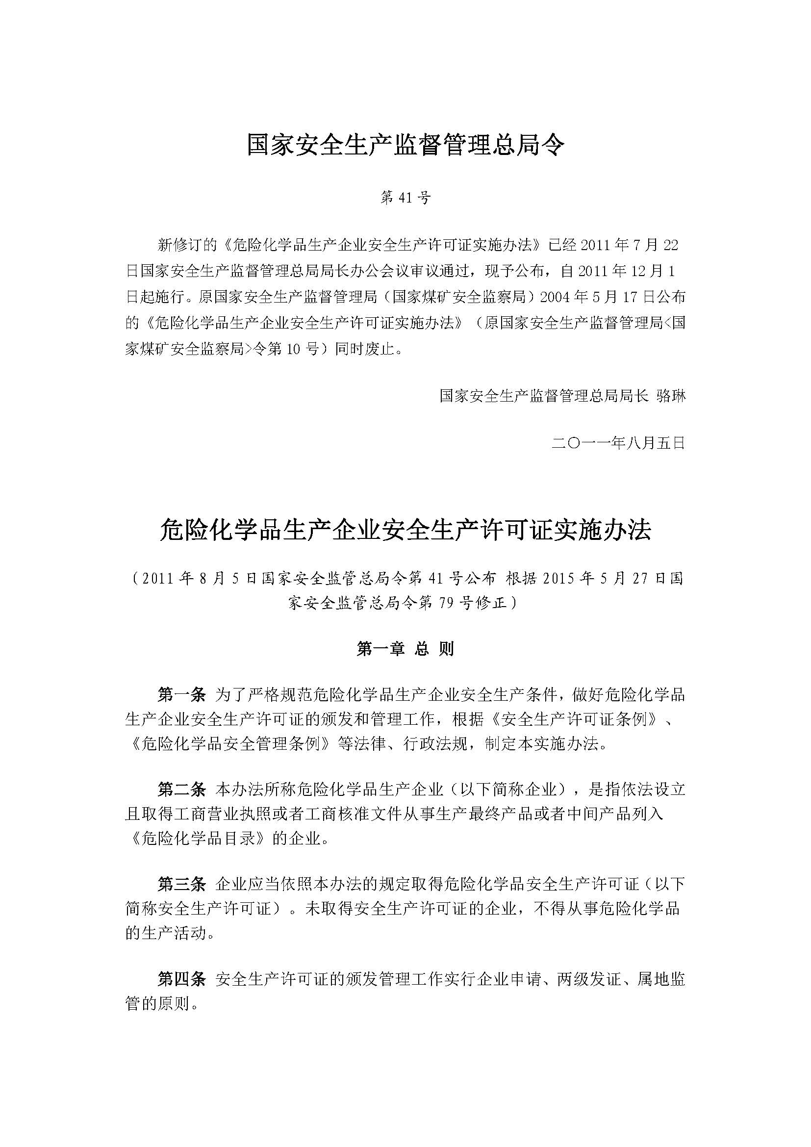 国家安全生产监督管理总局令41