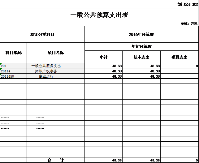 一般公共服务支出-知识产权管理事务活动支出48.38万元。