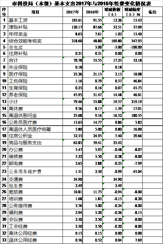 工资与福利支出2017年与2016年经费变化情况表
