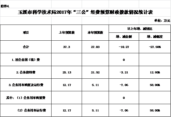 玉溪市科学技术局2017年部门预算公开说明