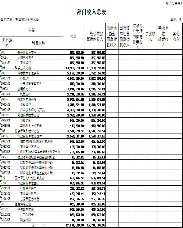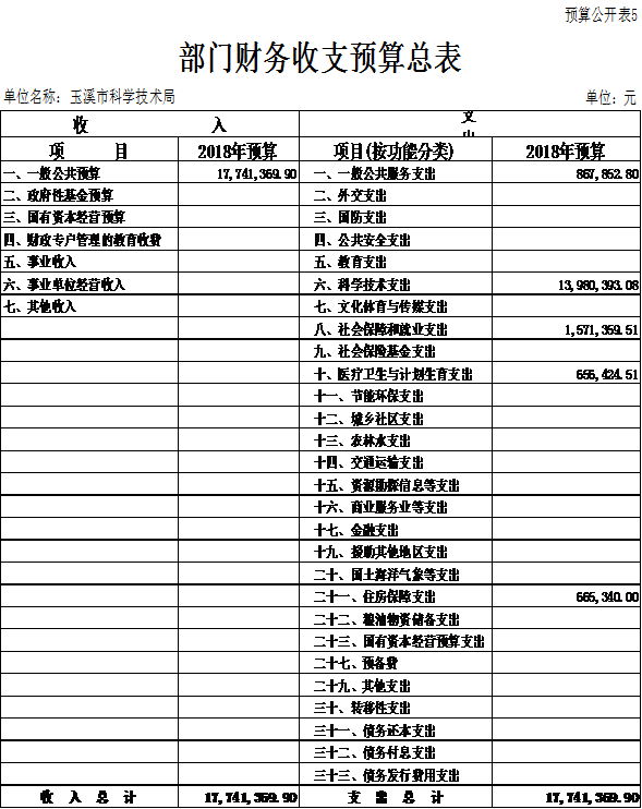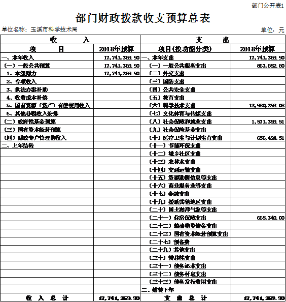 玉溪市科学技术局2018年门预算编制说明