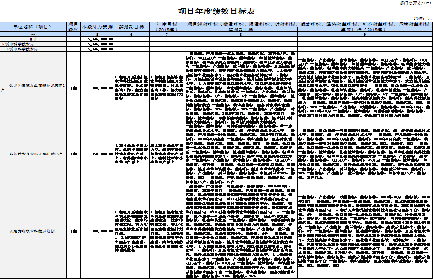 2018年对下专项转移支付项目资金5,304,000元,主要为执行市委市政府《关于加快实施创新驱动发展战略建设创新型玉溪的决定》(玉发[2014]39号) (以下简称《创新决定》)补助支出4,350,000元,其中:认定为高新技术企业17户3,400,000元,复审通过的高新技术企业15户450,000元,认定为国家农业科技园区1户300,000元,认定为省级农业科技示范园200,000元;根据《玉溪市专利奖励办法》、《创新决定》第四条第(五)款补助专利奖励954,000元。