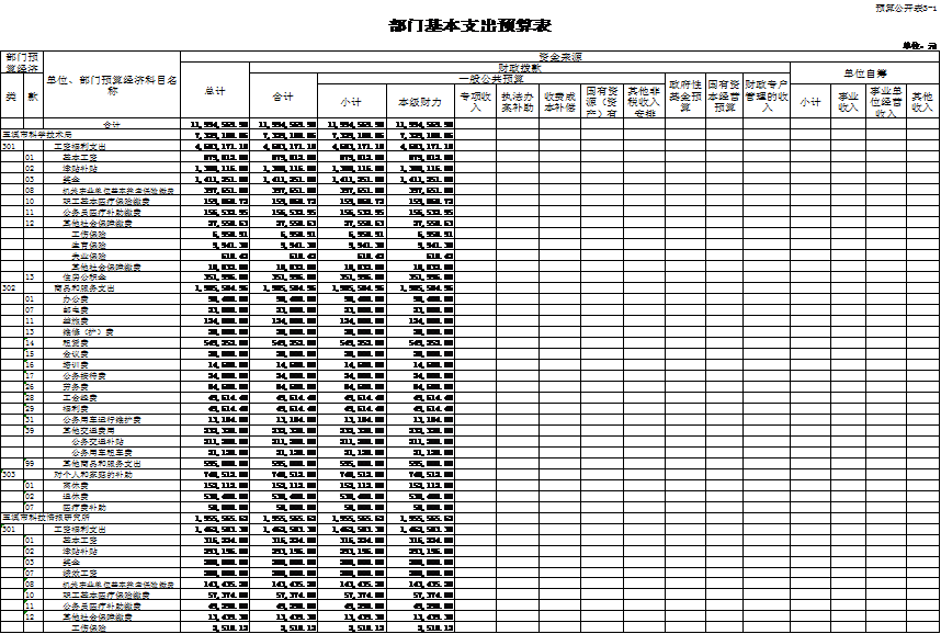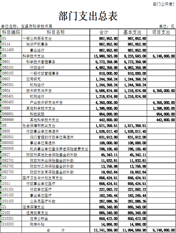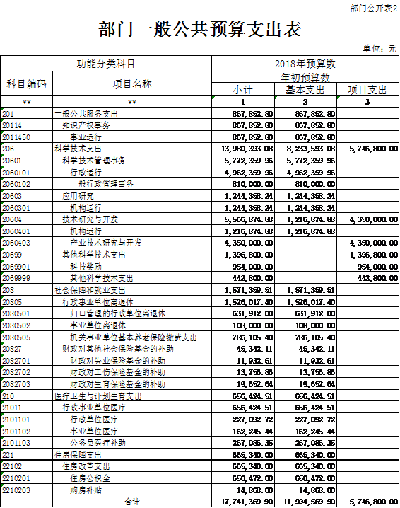 (一)基本支出11,994,569.90元,其中:市科技局7,329,188.06元,市科技情报研究所1,955,565.62元,市科技发展中心1,587,017.21元,市知识产权援助中心1,122,799.01元。