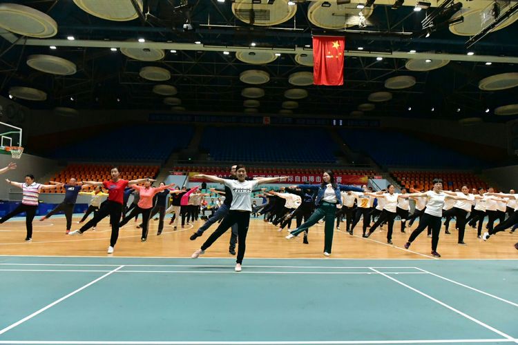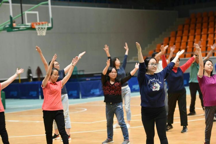 随后,全体干部职工整齐列队,分两组进行了工间操暨第九套广播体操展演。