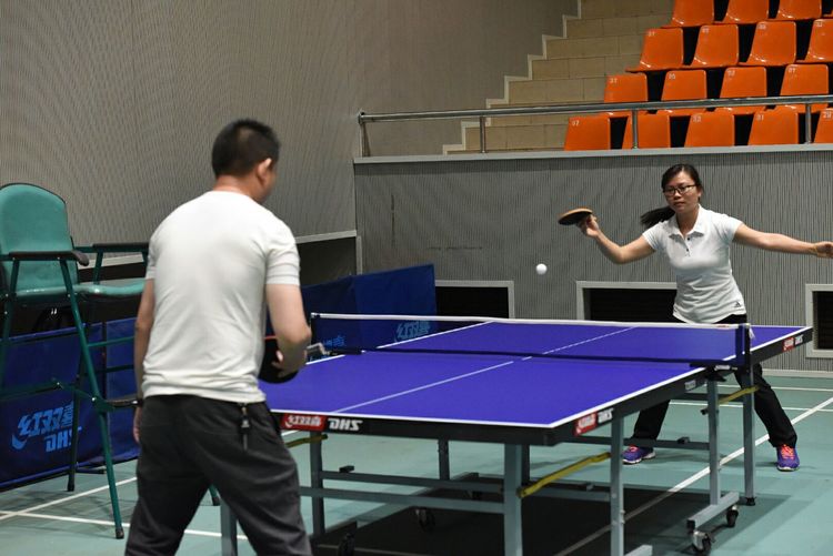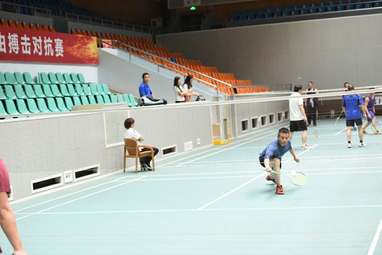 简短的开幕式结束后,进行了由市人社局一、二、三联队对阵四、五、六联队的乒乓球、羽毛球、篮球表演赛。