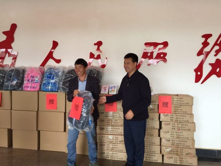 向建兴乡学校捐赠书包、作业本等学习用具