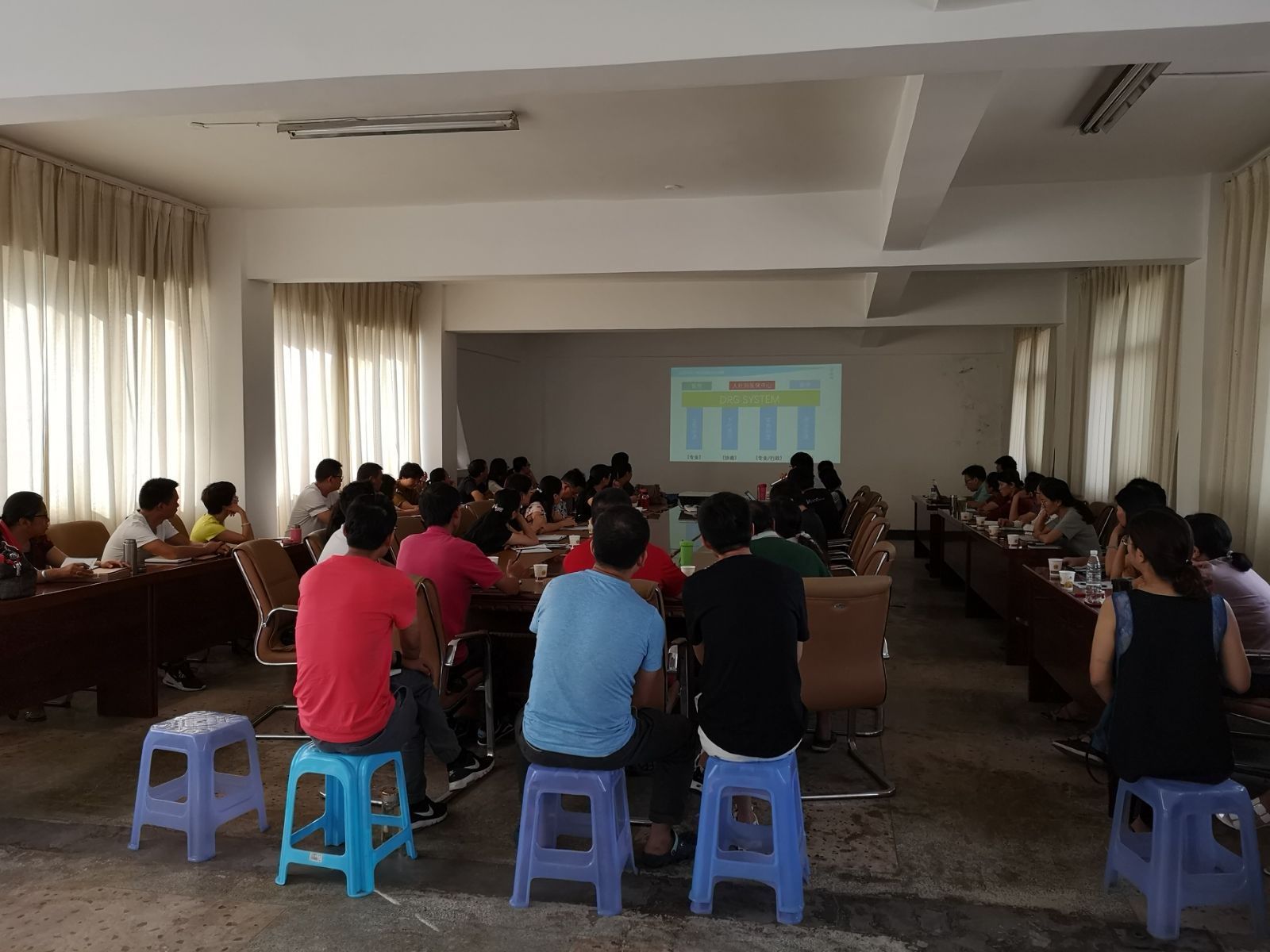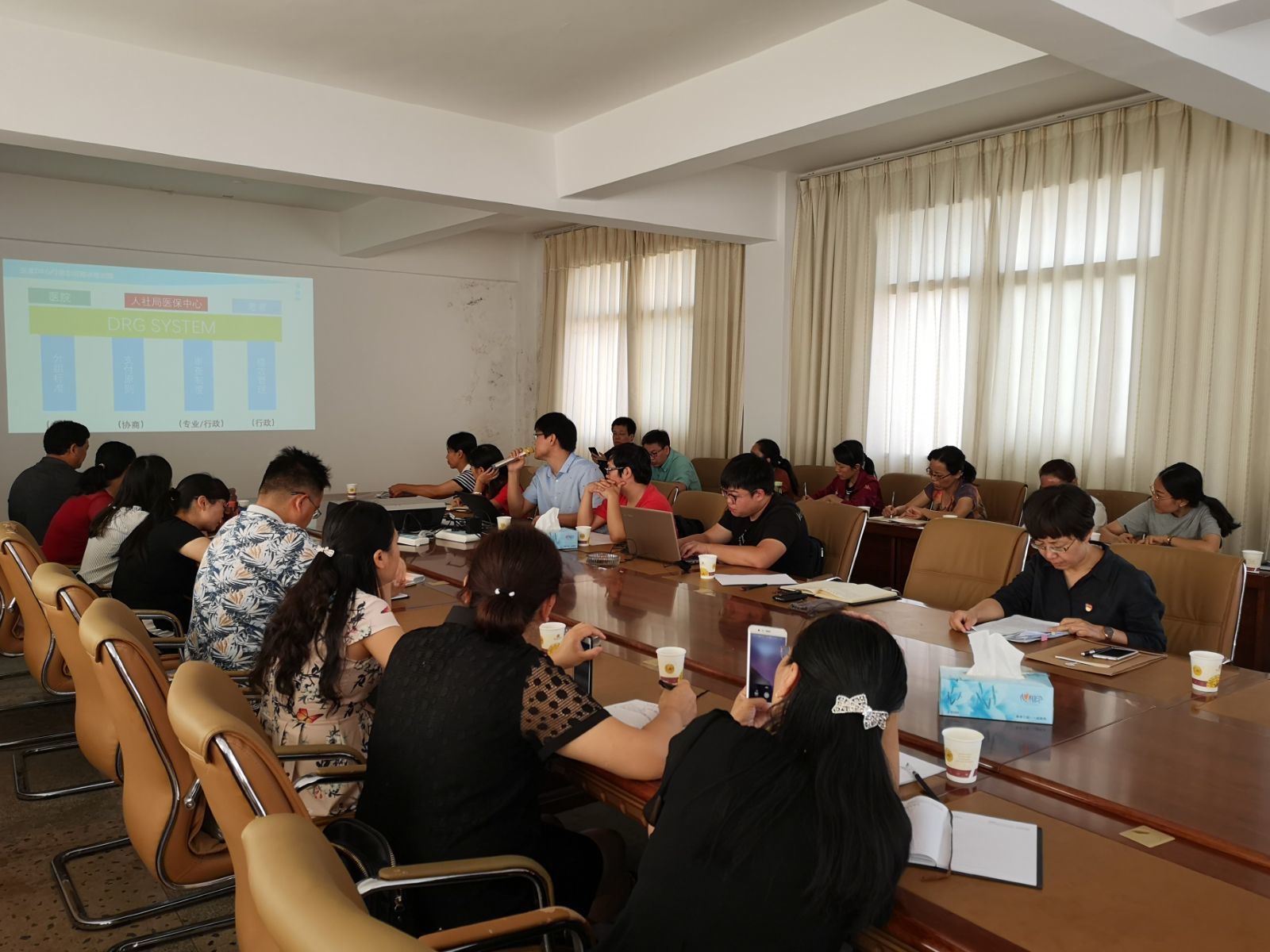 会议内容有:东软望海工程师讲解DRGs付费审核结算系统操作流程及功能、县区工作经验交流、2018年上半年病案评估情况通报及对下半年审核结算工作进行安排部署。