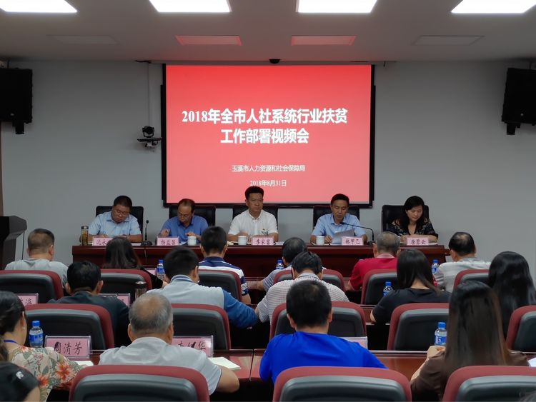 2018年8月31日,玉溪市人力资源和社会保障局召开2018年全市人社系统行业扶贫部署视频会议。会议深入学习贯彻党的十九大、习近平总书记关于扶贫开发的重要论述和省扶贫工作相关会议精神,传达学习市扶贫开发领导小组第八次全体会议精神,总结上一阶段我市人社系统脱贫攻坚巩固提升工作,研究安排下一阶段工作任务,确保圆满实现2018年脱贫巩固提升目标。