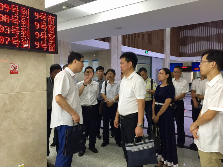 考察组一行在杭州市人社局党委委员、副局长、市社保局局长章明和相关处室负责人的陪同下,实地参观了人社服务大厅,详细询问人社窗口设置、硬件设备配置和使用情况,现场观看杭州人社一体化经办平台运行,“近距离”感受人社业务办理体验。