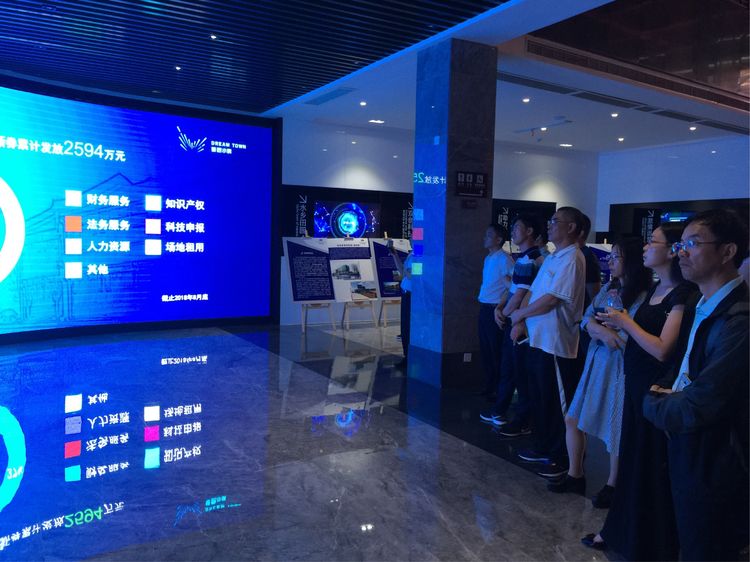 考察组一行来到梦想小镇创业e服务大厅,在梦想小镇接待员的讲解下,全面了解了小镇的整体情况。在梦想小镇红色驿站,考察组一行人走览了红色部落、互联书局、梦想地带等。