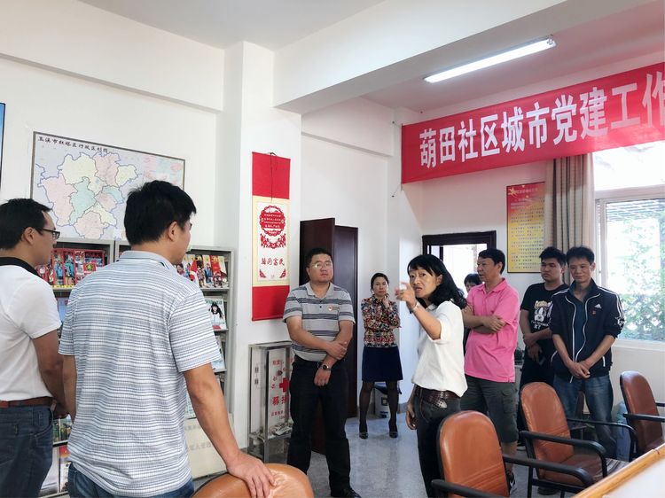 葫田社区党总支书记王天锷向市人社局第七党支部介绍了葫田社区党建工作情况,葫田社区是全市基层党建工作示范点,目前党群活动服务中心正在建设,下一步将以结对共建为契机,建立社区城市党建工作新机制,不断提高社区党建工作新水平。