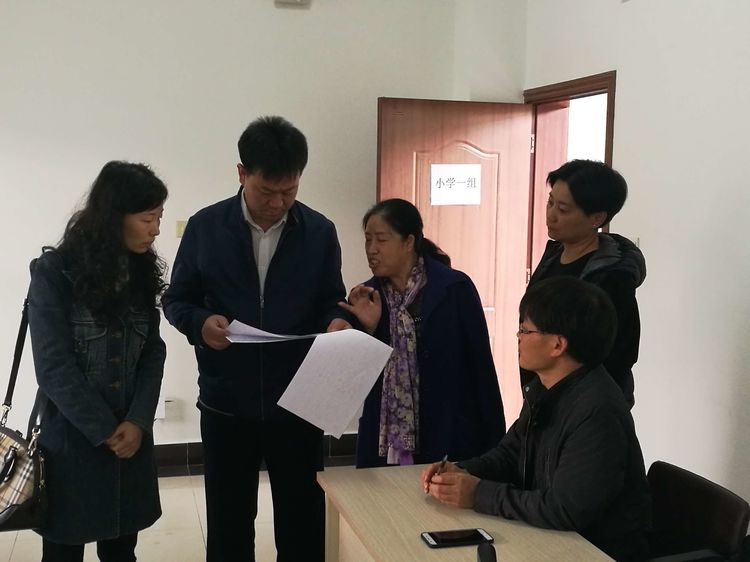 李家富局长现场听取市教育局相关同志介绍职称评审的情况