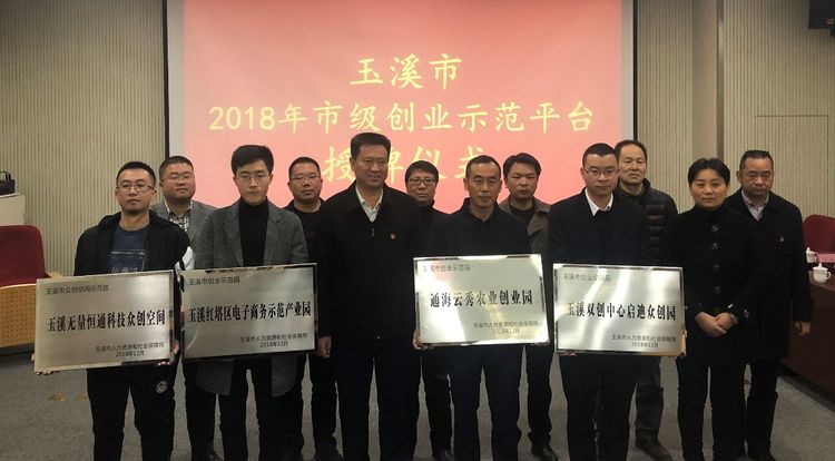 为认真贯彻落实《玉溪市“就业创业玉溪”行动计划(2016—2020)》《玉溪市人民政府关于印发玉溪市进一步做好当前和今后一段时期就业创业工作实施方案的通知》,进一步推进玉溪市创业园区、众创空间建设,鼓励、支持和引导社会各界积极参与创业孵化平台建设,充分发挥创业孵化平台扶持创业的示范效应,着力推动玉溪市“大众创业、万众创新”,2019年1月11日,玉溪市2018 年度市级创业示范平台授牌仪式举行,为获得“玉溪市创业示范园”的玉溪双创中心启迪众创园、玉溪红塔区电子商务示范产业园 、通海云秀农业创业园,“玉溪市众创空间示范区”的玉溪无量恒通科技众创空间4个创业示范平台进行授牌。