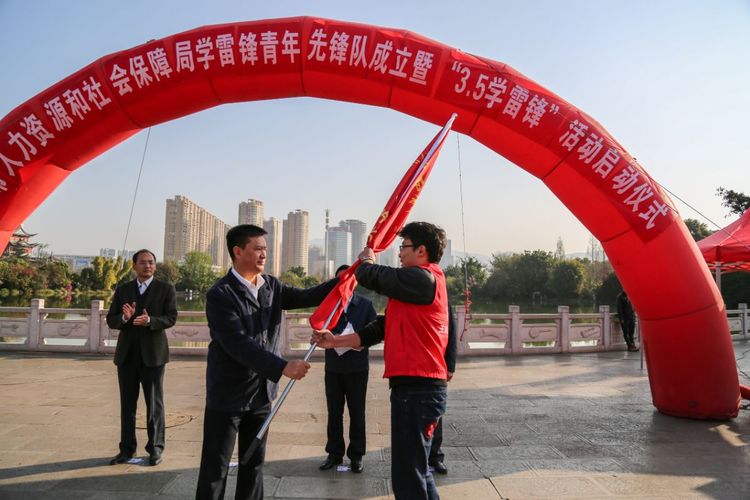 玉溪市人力资源和社会保障局举行“学雷锋青年先锋队”成立授旗仪式