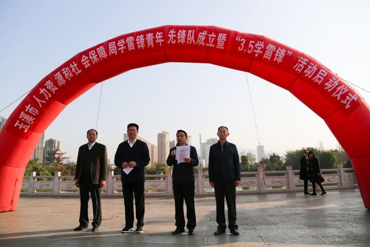 在第56个“学雷锋纪念日”到来之际,3月5日上午,“玉溪市人力资源和社会保障局学雷锋青年先锋队”成立仪式暨“3.5学雷锋”志愿服务活动启动仪式在聂耳音乐广场举行。市委组织部副部长,市人力资源和社会保障局党组书记、局长李家富作动员讲话并向学雷锋青年先锋队授旗,全局40余名80后、90后青年志愿者参加授旗仪式。