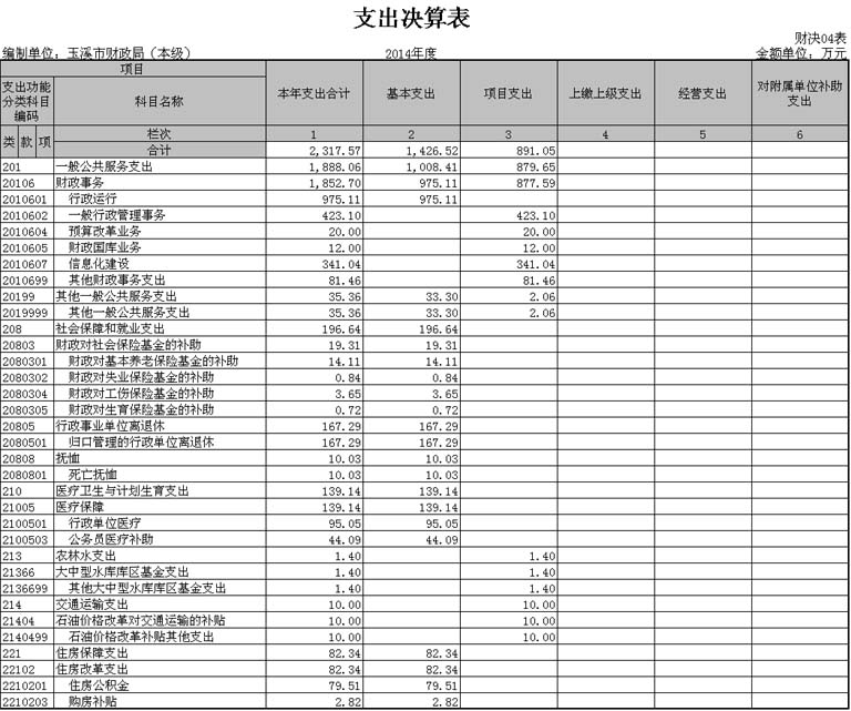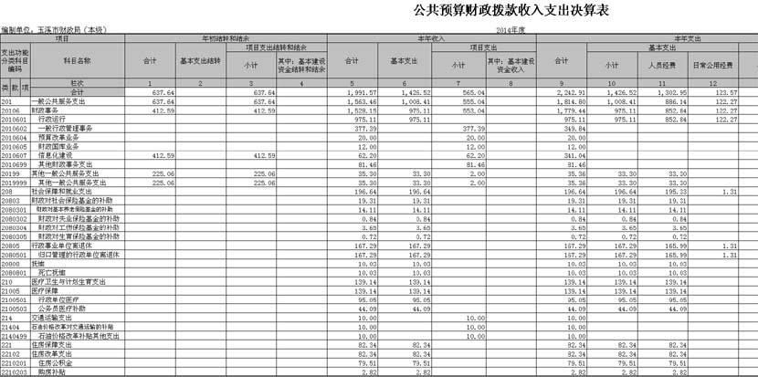 2014年,我局独立核算机构数为1,为局机关。独立编制机构数为4,分别是局机关(加挂市国资委牌子)、非税收入管理局、会计管理局、投资评审中心。由于非税收入管理局、会计管理局、投资评审中心年初基本支出预算、项目支出预算统一由局机关编报,因此账务统一由局机关核算,符合有一本预算、就有一本决算的原则。