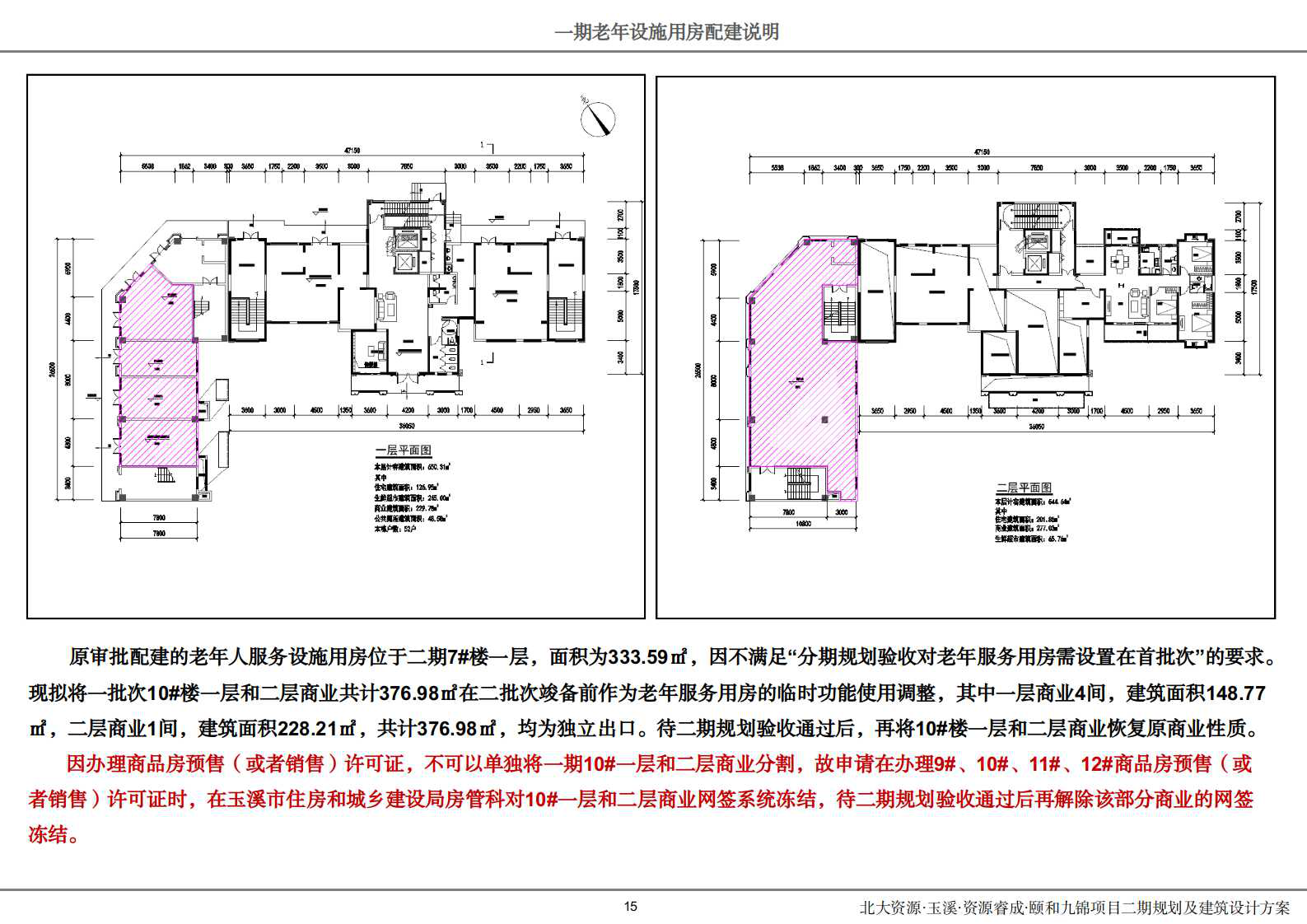 该项目尚在施工建设中,尚未销售。根据《玉溪市人民政府办公室关于印发优化玉溪市房地产市场平稳健康发展若干措施的通知》(玉政办发〔2024〕10 号)关于允许项目分期建设分期验收的相关规定,为办理分期验收备案、分期交房手续,建设单位拟分期办理规划核实。根据建设单位提交的分期规划核验的申请及相关资料,拟分三期进行规划核实(具体范围线详见附件2),其中一期主要包括9#、10#、11#、12#共计4栋高层住宅楼、13#楼幼儿园、15#楼大门和全部地下室;二期主要包括1#、2#、7#、8#共计4栋高层住宅楼及16#楼大门;三期主要包括3#、5#、6#共计3栋高层住宅楼。按照省、市关于新建住宅小区配建社区居家养老服务设施用房的相关规定,“对分期开发的新建住宅小区项目,配建的社区居家养老服务用房应安排在首期”,该分期方案将位于二期7#一层的老年服务设施用房暂时调整至一期10#楼一层和二层,利用部分商业用房临时代替使用,待项目整体通过规划核实后恢复至原位置。